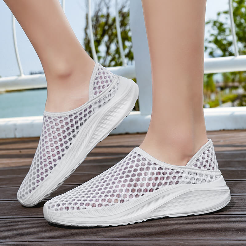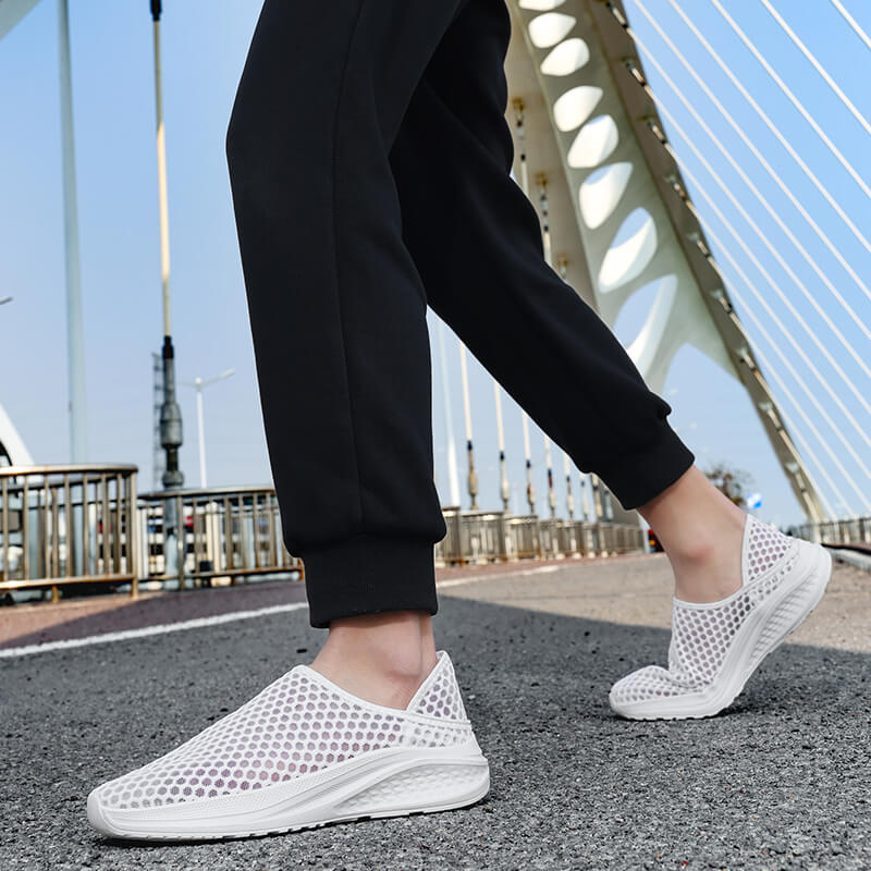 La tige en mesh respirant assure une excellente circulation de l’air et un séchage rapide, offrant une sensation de ventilation tout au long de la journée. Cette structure aérée épouse la forme du pied tout en limitant les frottements, garantissant un confort optimal jusqu'à la fin de vos journées. Ultra légères, ces chaussures se chaussent facilement grâce à leur conception slip-on, idéale pour un usage quotidien sans contrainte.
